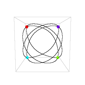 Here is a 4-mass orbit with cubic symmetry. (Note that this is