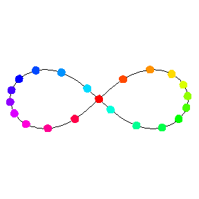 4k masses travel around 4 roughly circular interlocked orbits (where k is odd).